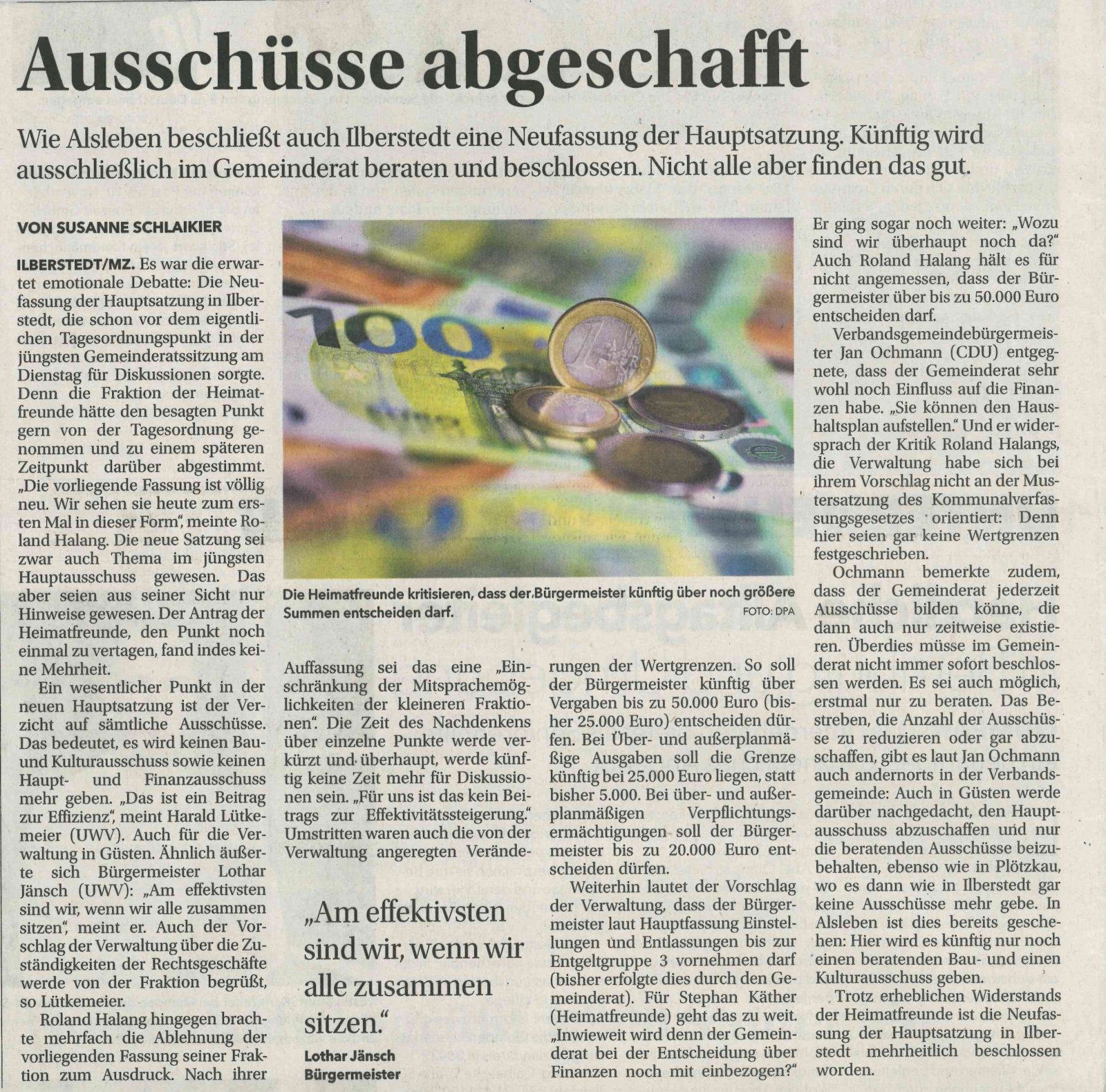 Leserbrief zum MZ-Artikel vom 25.10.2024 - Ausschüsse abgeschafft